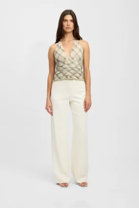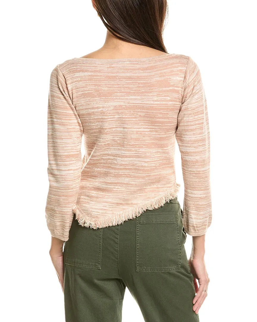 Introducing the '& Rouge Asymmetrical Top in Khaki Combo, a stylish addition to your wardrobe. This top measures approximately 16-18 inches from shoulder to hem and features a trendy fringe hem design. Made from a blend of 50% Viscose, 27% Polyester, and 23% Nylon, this top is not only fashionable but also comfortable to wear. Machine washable and imported, this top is perfect for any occasion. The model is 5'9' and is wearing a size small. Please note that measurements may vary slightly by size. Upgrade your look with this chic & Rouge top today!