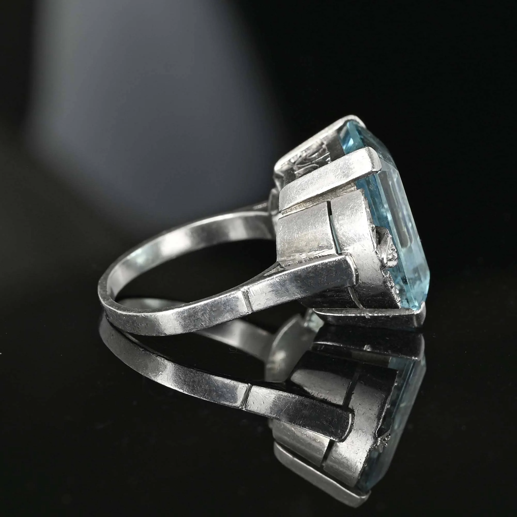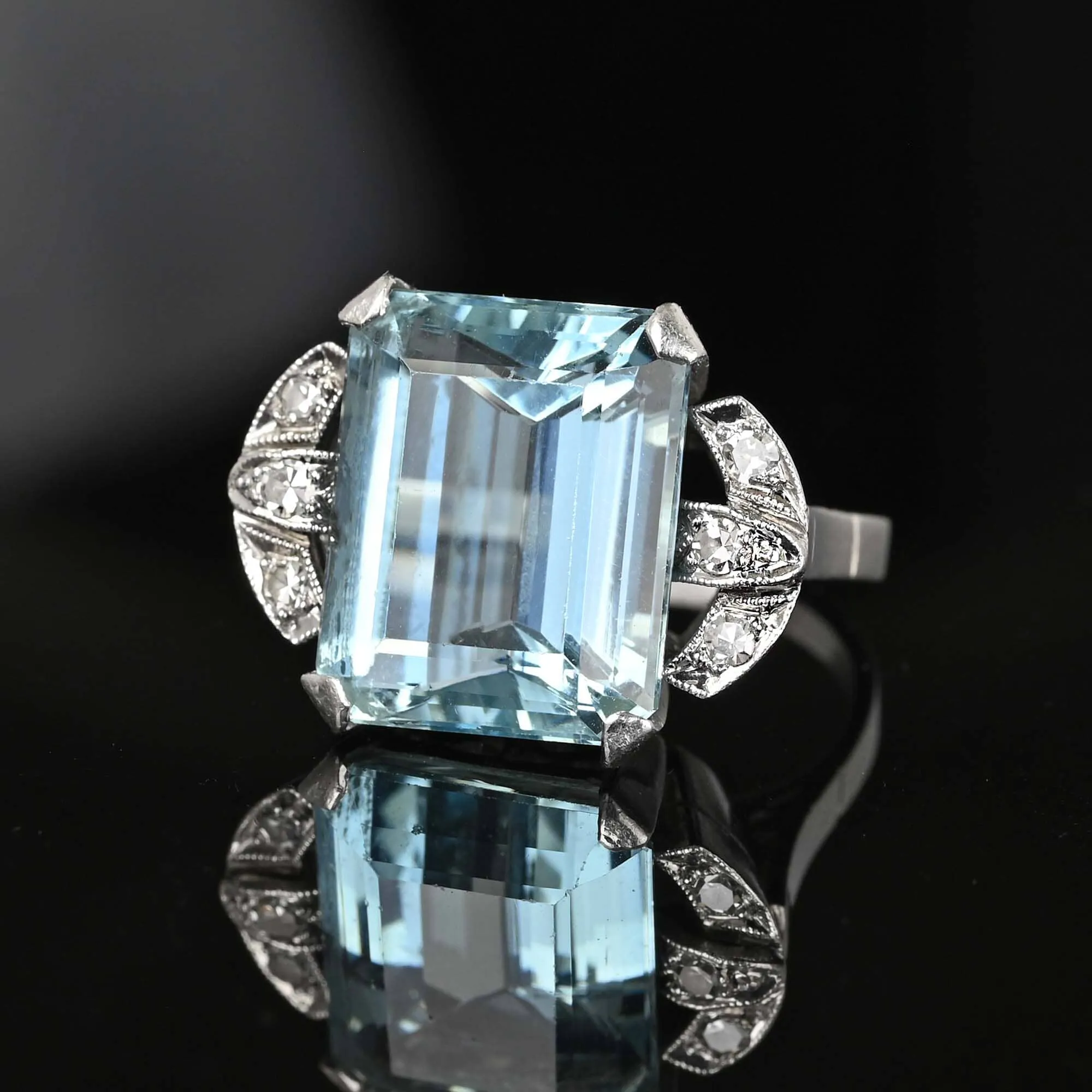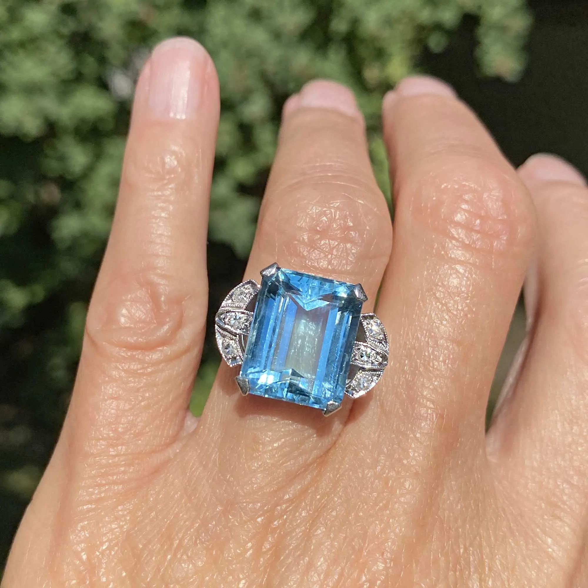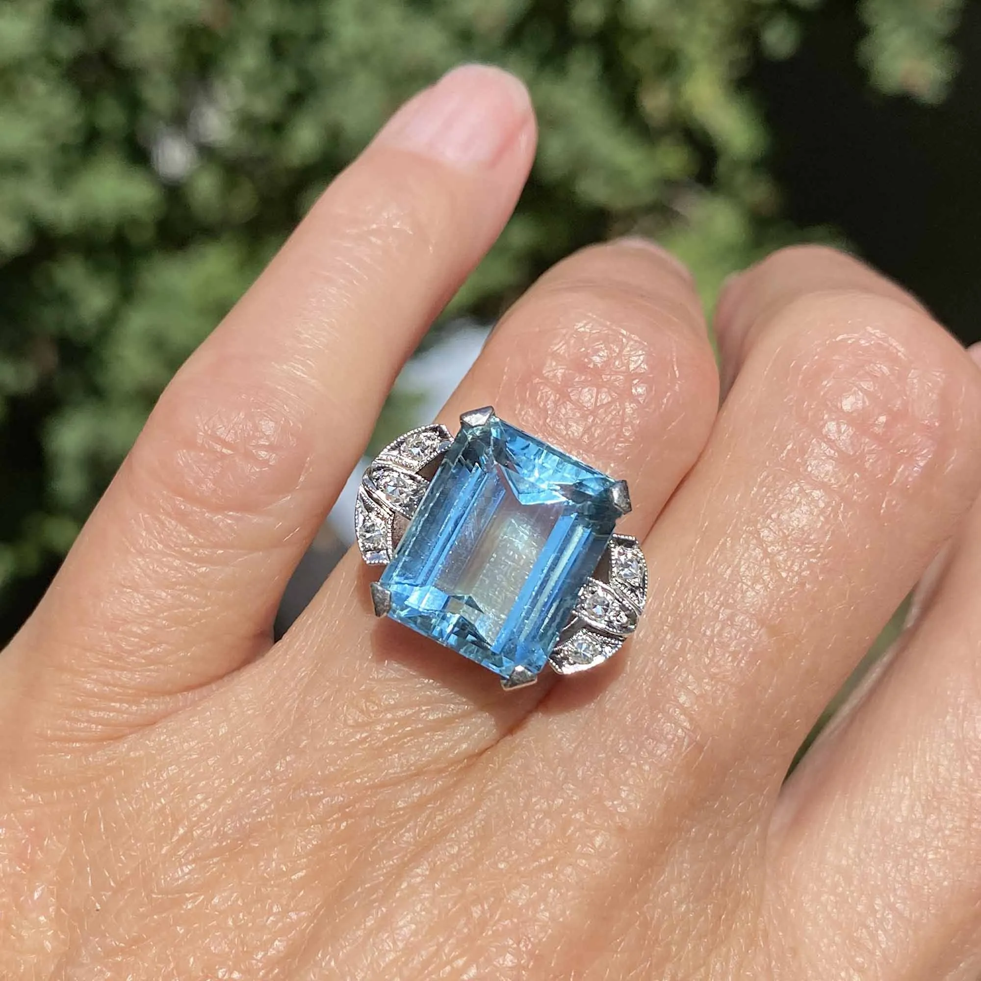 2nd Payment Art Deco Platinum Diamond Aquamarine Ring