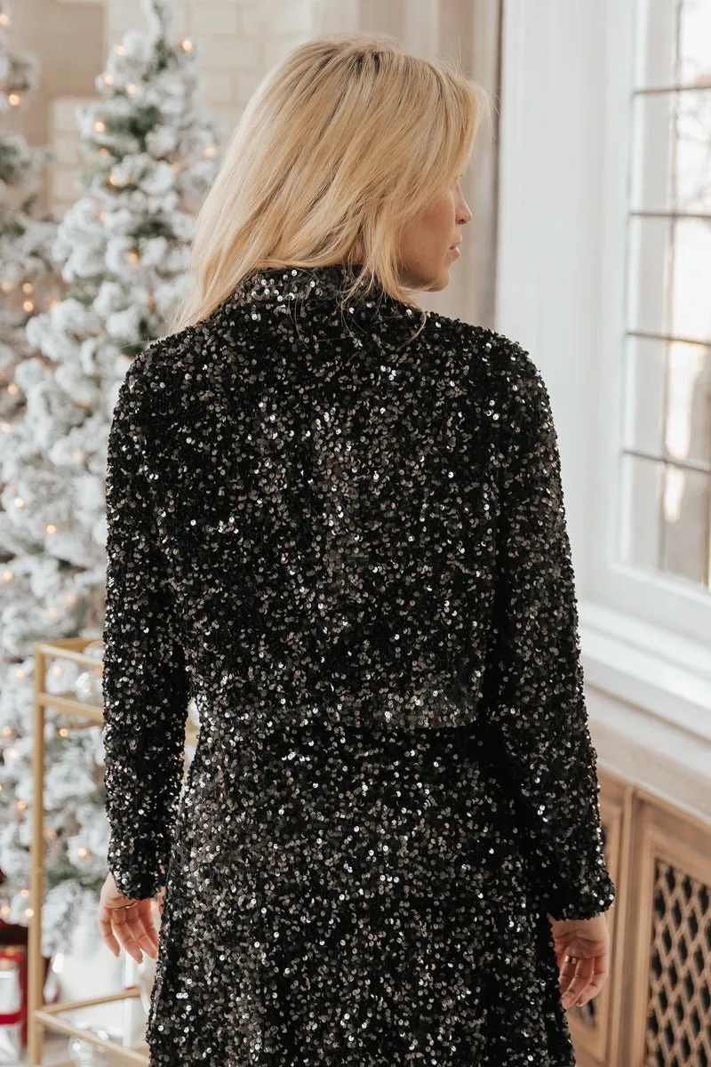 This eye-catching blazer is next level! One glimpse of our Black Sequin Velvet Crop Blazer and admirers will be vying for your attention all night long! To complete the look, just layer it over an elevated basic top and then pair it with the matching mini skirt.