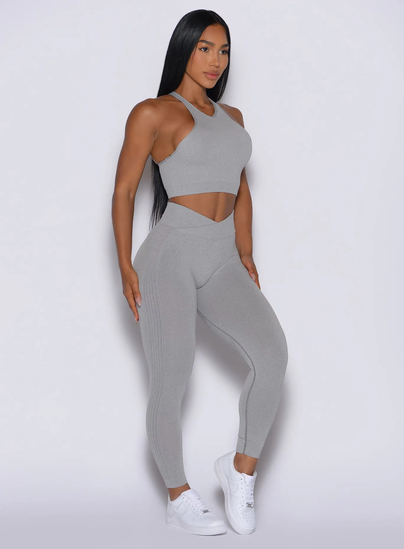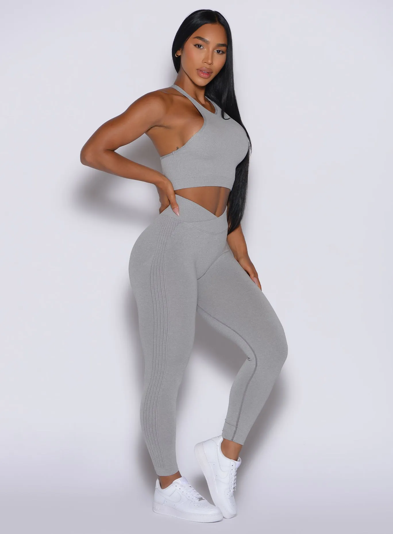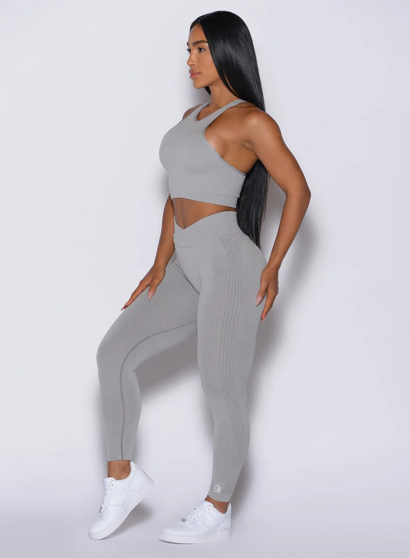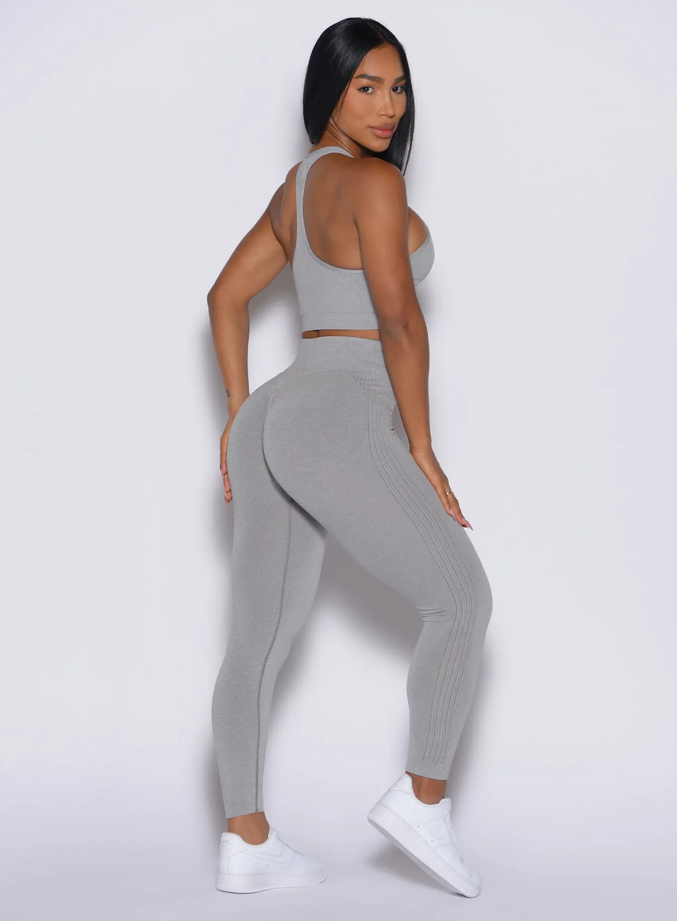 These heather rib seamless leggings are essential for total comfort and freedom of movement during your workouts. The fold-over rib waistband stays securely in place, while the stretchy, cozy fabric, featuring our signature flattering booty scrunch, adds an extra pop. These lightweight, airy leggings are also squat-proof. Pair with the matching rib sports bras for a flawless gym look.